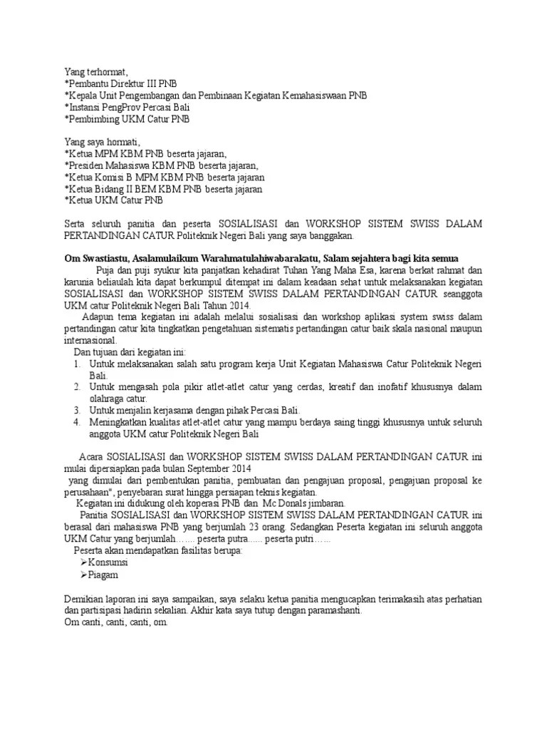 Yang kami hormati, deputi bidang pengembangan teknologi dan . Doc contoh laporan kegiatan josan jefan academia edu laporan pelaksanaan kegiatan divisi ppid polri 9 contoh laporan kegiatan 9 contoh laporan . Khazanah arsip laporan ketua panitia pelaksana kegiatan sosialisasi pelayanan administrasi kependudukan tahun 2018. Laporan ketua panitia pelaksana rapat koordinasi dan workshop refocusing kegiatan dan anggaran dak bidang pertanian tahun 2015 dan 2016 bandung, . Yang terhormat bapak kepala smk negeri 1 semarang yang kami hormat wakil kepala smk negeri semara…